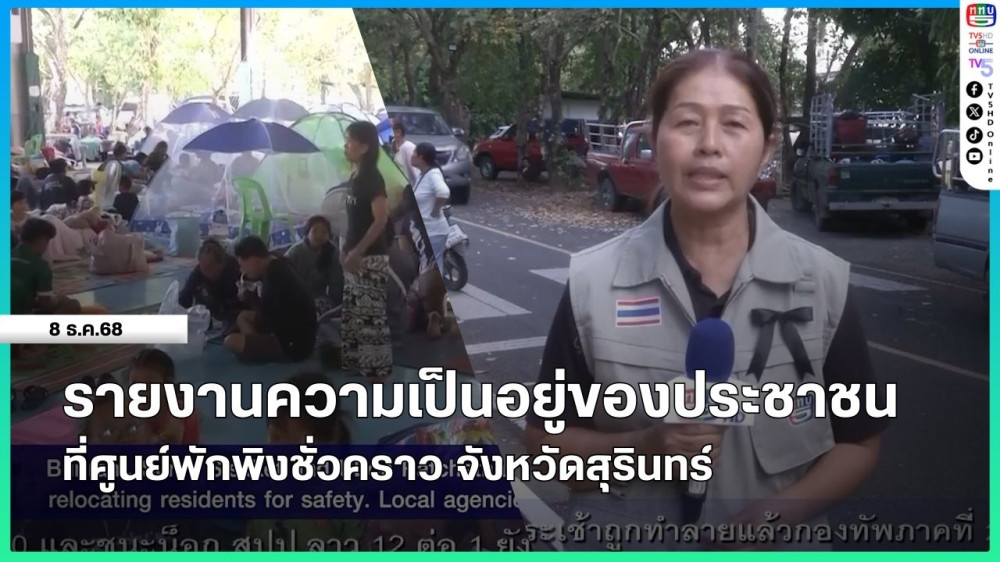 รายงานความเป็นอยู่ของประชาชนที่ศูนย์พักพิงชั่วคราว จังหวัดสุรินทร์