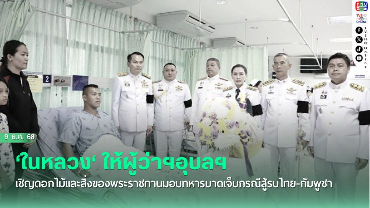 วานนี้ 8 ธันวาคม 2568 เวลา 17.00 น. พระบาทสมเด็จพระเจ้าอยู่หัว ทรงพระกรุณาโปรดเกล้าโปรดกระหม่อมให้ นายณรงค์ เทพเสนา ผู้ว่าราชการจังหวัดอุบลราชธานี เชิญดอกไม้ และตะกร้าสิ่งของพระราชทานของพระบาทสมเด็จพระเจ้าอยู่หัว และสมเด็จพระนางเจ้า ฯ พระบรมราชินี ไปมอบแก่ พลทหาร พรชัย จําปาจุม และพลทหาร ยุทธภูมิ ไร่บูรณะ