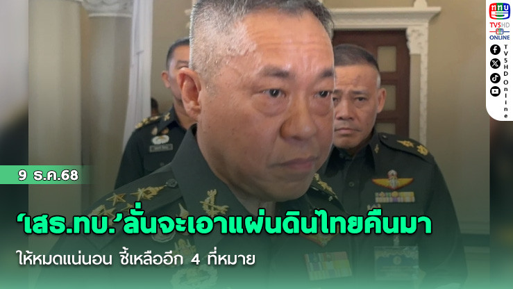 ‘เสธ.ทบ.’ลั่นเพื่อนทหารไทยจะเอาแผ่นดินไทยคืนมาให้หมดแน่นอน ชี้เหลืออีก 4 ที่หมาย เฝ้าระวังโดรนกัมพูชาในพื้นที่มากขึ้น ย้ําต้องลิดรอนขีดความสามารถทหารเขมรเชิงลึกให้หมดสภาพในการคิดที่เข้ามาในดินแดนไทยในอนาคต
