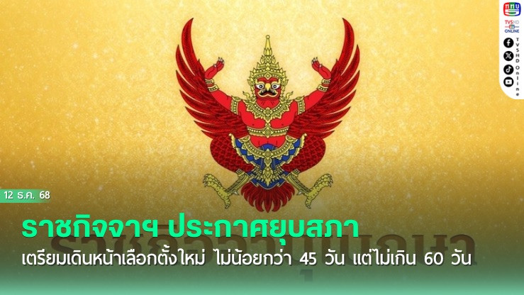 ด่วน! ราชกิจจาฯ ประกาศยุบสภา เตรียมเดินหน้าเลือกตั้งใหม่ ไม่น้อยกว่า 45 วัน แต่ไม่เกิน 60 วัน