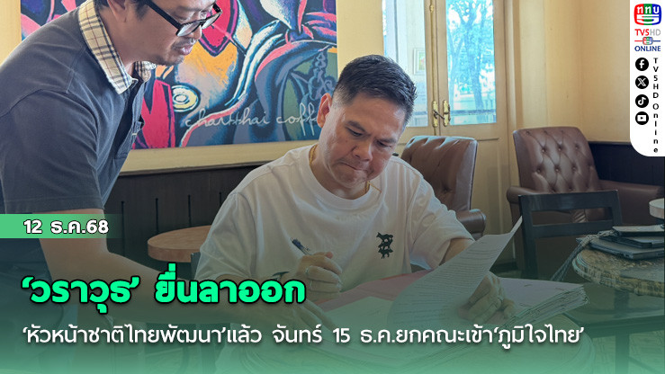 ‘วราวุธ’ยื่นลาออก‘หัวหน้าชาติไทยพัฒนา’แล้ว จันทร์ 15 ธ.ค.ยกคณะเข้า‘ภูมิใจไทย’