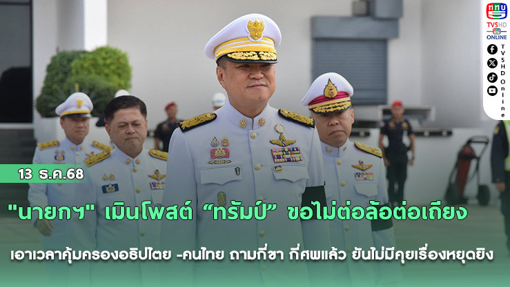 "นายกฯ" เมินโพสต์ “ทรัมป์” ขอไม่ต่อล้อต่อเถียง เอาเวลาคุ้มครองอธิปไตย -คนไทย ถามกี่ขา กี่ศพแล้ว ยันไม่มีคุยเรื่องหยุดยิง