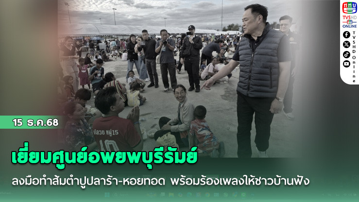 'อนุทิน'ดอดลงพื้นที่เยี่ยมศูนย์อพยพบุรีรัมย์ ลงมือทําส้มตําปูปลาร้า-หอยทอด พร้อมร้องเพลงให้ชาวบ้านฟัง