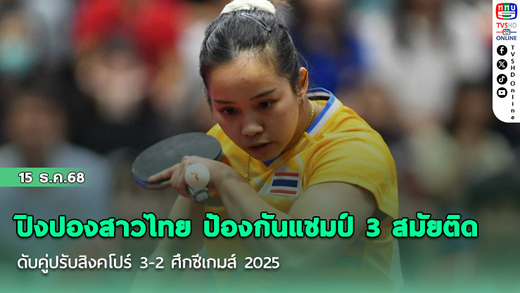 การแข่งขันเทเบิลเทนนิสในมหกรรมกีฬาซีเกมส์ ครั้งที่ 33 ที่เวสต์เกตฮอลล์ ชั้น 4 ศูนย์การค้าเซ็นทรัลเวสต์เกต บางใหญ่ กรุงเทพฯ เมื่อวันที่ 15 ธ.ค.68 ชิง 2 เหรียญทอง ประเภททีมหญิงและทีมชาย โดยทัพนักกีฬาไทยทะลุเข้าสู่รอบชิงชนะเลิศได้ในประเภททีมหญิง โคจรมาปะทะคู่ปรับตลอดกาล สิงคโปร์