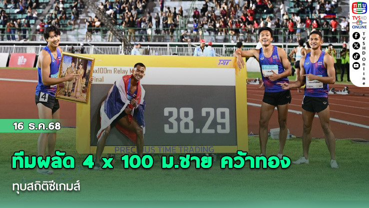 การแข่งขันกรีฑา ในกีฬาซีเกมส์ ครั้งที่ 33 ที่สนามศุภชลาศัย เมื่อวันที่ 15 ธันวาคม2568 ไฮไลต์อยู่ที่ วิ่ง 4x100 เมตร ทีมชาย