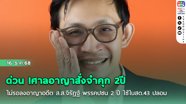 ด่วน !ศาลอาญาสั่งจําคุก 2ปี ไม่รอลงอาญาอดีต ส.ส.จิรัฏฐ์ พรรคปชน 2 ปี ใช้ใบสด.43 ปลอม