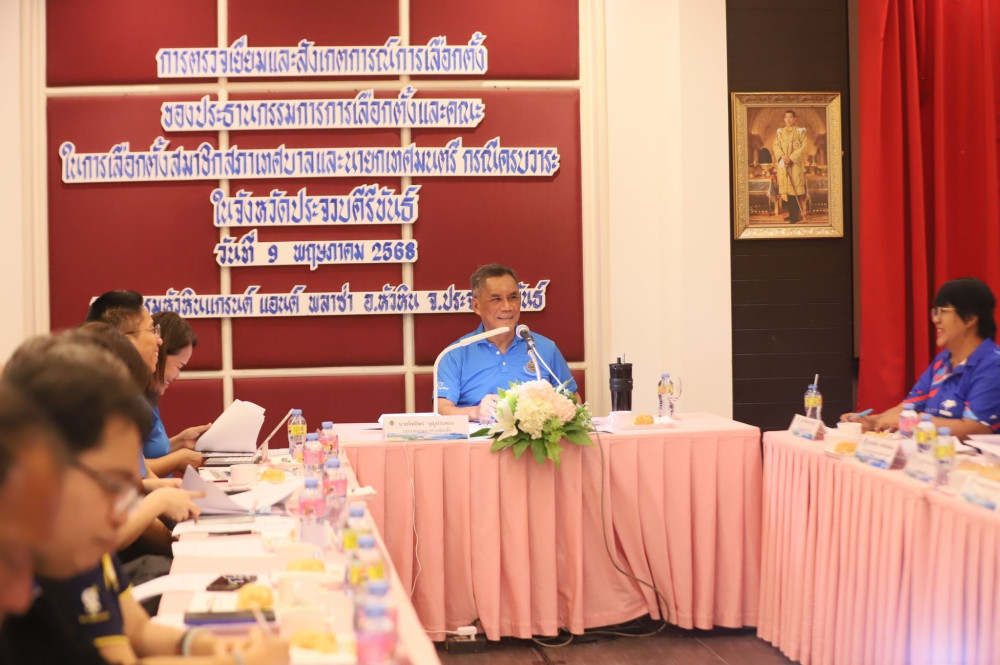 วันที่ 9 พฤษภาคม 2568 เวลา 10.00 น. นายอิทธิพร บุญประคอง ประธานกรรมการการเลือกตั้ง เดินทางลงพื้นที่จังหวัดประจวบคีรีขันธ์ เพื่อตรวจเยี่ยมการเตรียมความพร้อมการเลือกตั้งสมาชิกสภาเทศบาลนครหัวหิน และนายกเทศมนตรีนครหัวหิน พร้อมร่วมประชุมกับเจ้าหน้าที่ฝ่ายต่างๆ ที่เกี่ยวข้อง ณ โรงแรมหัวหินแกรนด์ แอนด์ พลาซ่า