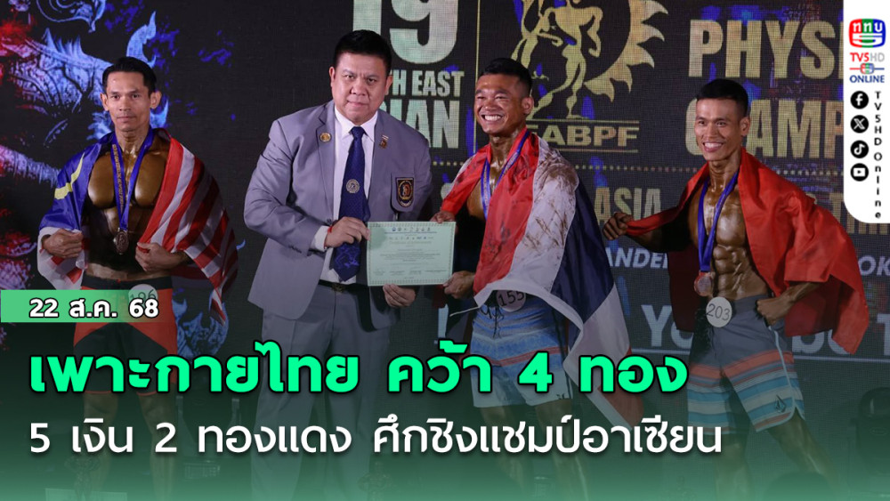 เพาะกายไทย สู้เต็มที่ คว้า 4 ทอง 5 เงิน 2 ทองแดง โดยแชมป์อาเซียนหน้าใหม่ 4 คน ฟีฟ่า-เอกรัตน์ ศรีโสภา เพาะกาย, เมศวร์-ฏรัตน์พงศ์ เกื้อทอง แอธเลติกฟิสิค, วัชรากร ด้วงเดช สปอร์ตฟิสิค และ โย-โยธกา สงวนวงษ์ โมเดลฟิสิค พร้อมสู้ต่อ ชิงแชมป์เอเชีย