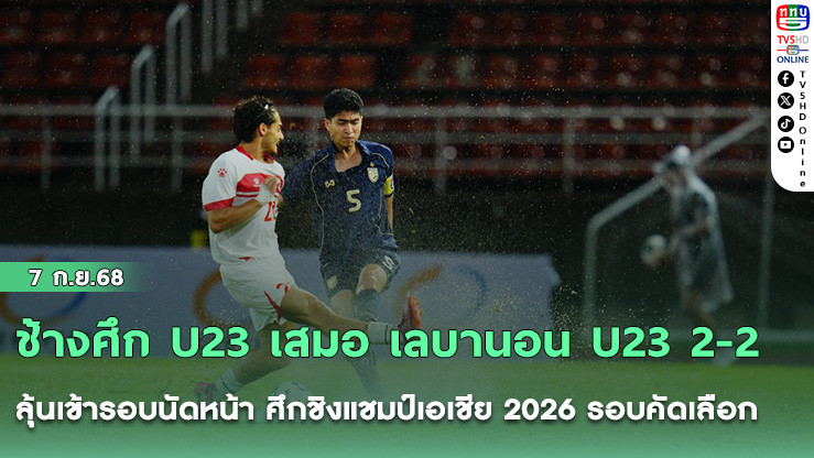 วันที่ 6 กันยายน 2568 เวลา 19.30 น. ณ ธรรมศาสตร์ สเตเดียม จังหวัดปทุมธานี การแข่งขันฟุตบอลชิงแชมป์เอเชีย รุ่นอายุไม่เกิน 23 ปี 2026 รอบคัดเลือก กลุ่มเอฟ นัดที่สอง ทีมชาติไทย U23 ลงสนามพบกับ เลบานอน U23
