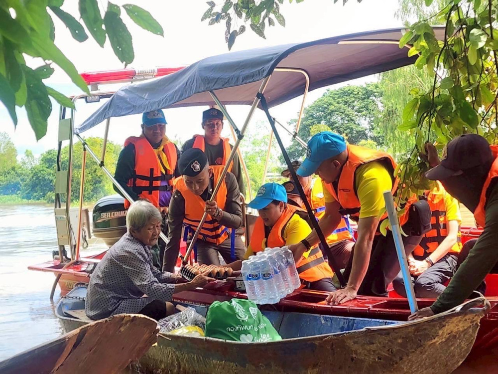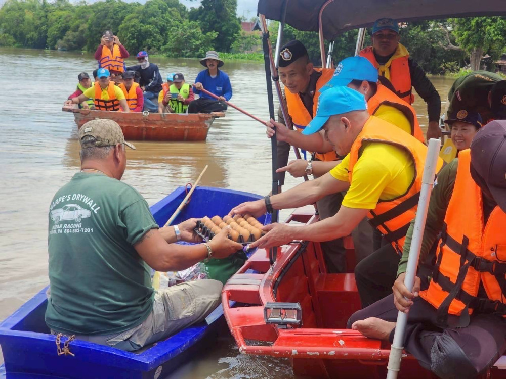 ในการนี้ได้ร่วมกับเจ้าหน้าที่ตํารวจ และหน่วยงานราชการในพื้นที่ ได้แก่ อําเภอผักไห่ และองค์การบริหารส่วนตําบลผักไห่ เพื่อมอบ ถุงยังชีพที่ได้รับการสนับสนุนจากสถานีวิทยุโทรทัศน์กองทัพบก (ททบ.5) กองทัพภาคที่ 1 และกองทัพน้อยที่ 1 แก่กลุ่มเปราะบางและผู้สูงอายุที่ได้รับผลกระทบจากอุทกภัย จํานวน 65 ราย