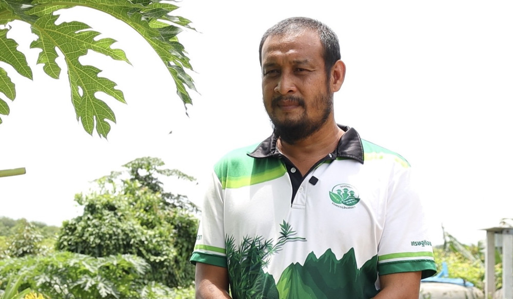 นายยงยุทธ อ่วมงามทรัพย์ สมาชิกวิสาหกิจชุมชนฯ กล่าวว่า เป็นทหารเกษียณอายุราชการ ต้องเช่าบ้านอยู่ ส่วนอาชีพทํางานรับจ้างทั่วไป รายได้ไม่แน่นอน รู้จากเพื่อนๆ ว่า “ธนาคารที่ดิน” จะมาช่วยเหลือคนจนจริงๆ จึงมาเข้าร่วมโครงการ และได้รับการจัดสรรที่ดินทํากินและอยู่อาศัย รวม 2 ไร่เศษ ปลูกบ้าน และปลูกพืชหลากหลายชนิด ทั้งทุเรียน ลองกอง เงาะ ปลูกผักสวนครัว ทําปุ๋ยชีวภาพใช้เอง เลี้ยงไก่ ปลา ลดค่าใช้จ่าย ชีวิตดีขึ้น เหมือนเกิดใหม่ พึ่งพาตนเองได้มีความสุข “ขอขอบคุณธนาคารที่ดิน ที่ทําให้มีวันนี้”