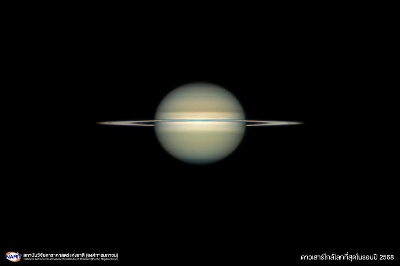 บันทึกภาพหายาก ดาวเสาร์ตรงข้ามดวงอาทิตย์ 21 ก.ย. 68 นักดาราศาสตร์เผย ดาวเสาร์ใกล้โลกที่สุดปี 2568 วงแหวนบางเฉียบ ก่อนจะเห็นชัดอีกครั้งปี 2575