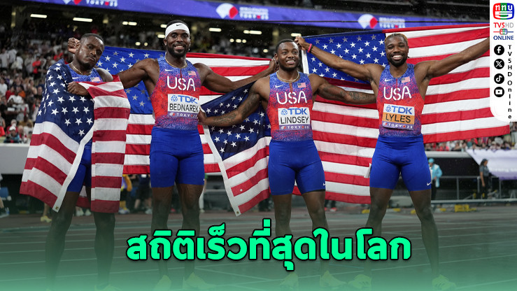 ทีมลมกรดอเมริกันผงาด! ไลล์ส-โคลแมน-เบดนาเรก-ลินด์ซีย์ ซิ่งคว้าทอง 4×100 เมตรชาย กรีฑาชิงแชมป์โลก 2025 พร้อมทําสถิติเร็วที่สุดในโลกฤดูกาลนี้ (WL)