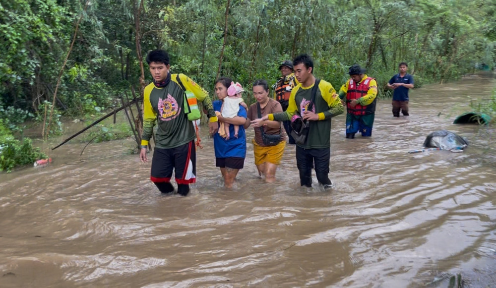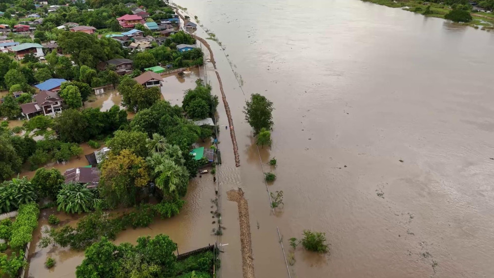 วันที่ 5 ตุลาคม 2568 - ผู้สื่อข่าวรายงานว่า เกิดเหตุแนวคันดินกันน้ําริมแม่น้ําเจ้าพระยา ของเทศบาลตําบลโพนางดําออก อําเภอสรรพยา จังหวัดชัยนาท ทรุดตัวและพังทลายพร้อมกัน 2 จุด บริเวณหน้าวัดสมอ หมู่ 3 ส่งผลให้น้ําจากแม่น้ําทะลักผ่านช่องโหว่เข้าท่วมถนนและหมู่บ้านด้านในอย่างรุนแรง กระแสน้ําไหลเชี่ยว ทําให้ชาวบ้านหลายหลังคาเรือนไม่ทันอพยพ