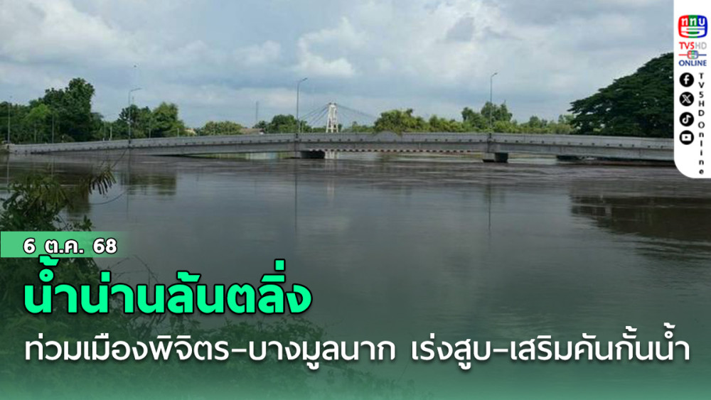 วันที่ 6 ตุลาคม 2568 - สถานการณ์น้ําท่วมจังหวัดพิจิตรยังน่าเป็นห่วง หลังแม่น้ําน่านเพิ่มระดับต่อเนื่องและเอ่อล้นตลิ่งเข้าท่วมหลายชุมชน ทั้งในเขตเทศบาลเมืองพิจิตรและเทศบาลเมืองบางมูลนาก โดยเฉพาะชุมชนหลังสถานีรถไฟพิจิตร และชุมชนสะพานร่วมใจ ระดับน้ําสูงเกือบ 1 เมตร เจ้าหน้าที่ต้องใช้เรืออพยพผู้ป่วยติดเตียงไปยังที่ปลอดภัยชั่วคราว
