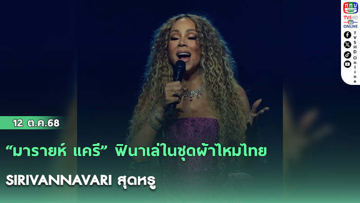 วันที่ 12 ตุลาคม 2568 - เวที MARIAH CAREY The Celebration of MIMI in Thailand กลายเป็นค่ําคืนที่คนทั้งโลกต้องพูดถึง เมื่อ “มารายห์ แครี” (Mariah Carey) ดิว่าเสียงทรงพลังระดับตํานาน ปรากฏตัวในชุด ผ้าไหมไทย SIRIVANNAVARI Couture อันงดงามตระการตา ผลงานการออกแบบสุดพิเศษโดย สมเด็จพระเจ้าลูกเธอ เจ้าฟ้าสิริวัณณวรี นารีรัตนราชกัญญา
