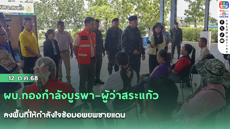 ผู้บัญชาการกองกําลังบูรพา จับมือผู้ว่าราชการจังหวัดสระแก้ว ลงพื้นที่ให้กําลังใจเจ้าหน้าที่และประชาชน 4 อําเภอชายแดน ระหว่างการซักซ้อมแผนอพยพ เตรียมพร้อมรับมือสถานการณ์ฉุกเฉินชายแดนไทย–กัมพูชา