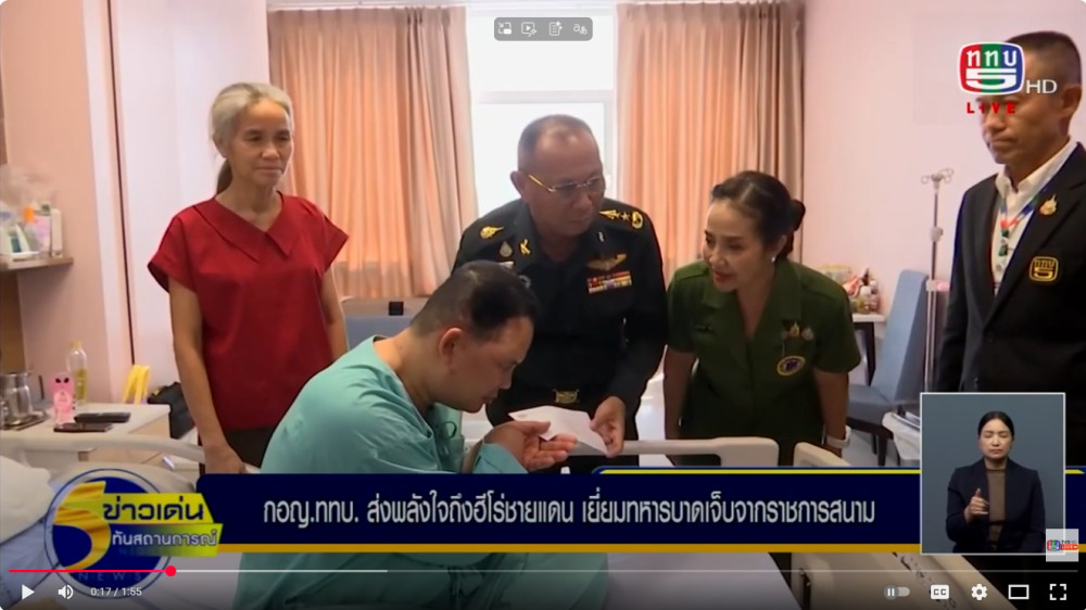 ที่โรงพยาบาลพระมงกุฏเกล้า พลโท อาวุธ พุทธอํานวย กรรมการผู้อํานวยการใหญ่สถานีวิทยุโทรทัศน์กองทัพบก พร้อมด้วย คุณเบญจวรรณ พุทธอํานวย และ คณะผู้บริหารสถานีวิทยุโทรทัศน์กองทัพบก เยี่ยมให้กําลังใจทหารที่ได้รับบาดเจ็บจากการปฏิบัติหน้าที่ราชการสนาม รวม 13 นาย แบ่งออกเป็น 2 ภารกิจ คือ ปฎิบัติหน้าที่ ในพื้นที่ชายแดนไทย-กัมพูชา จํานวน 12 นาย และ ปฎิบัติหน้าที่ใน จังหวัดชายแดนใต้ 1 นาย โดย พลโท อาวุธ ได้มอบกระเช้าและเงินช่วยเหลือเยียวยาเพื่อเป็นขวัญและกําลังใจ พร้อมทั้งกล่าวยกย่องและขอบคุณทหารหาญ ที่ได้ปฏิบัติหน้าที่อย่างเต็มความสามารถและปกป้องอธิปไตยของไทย