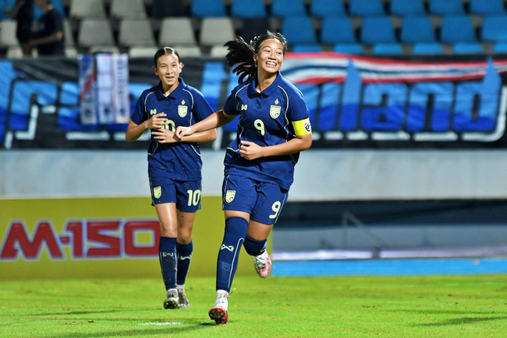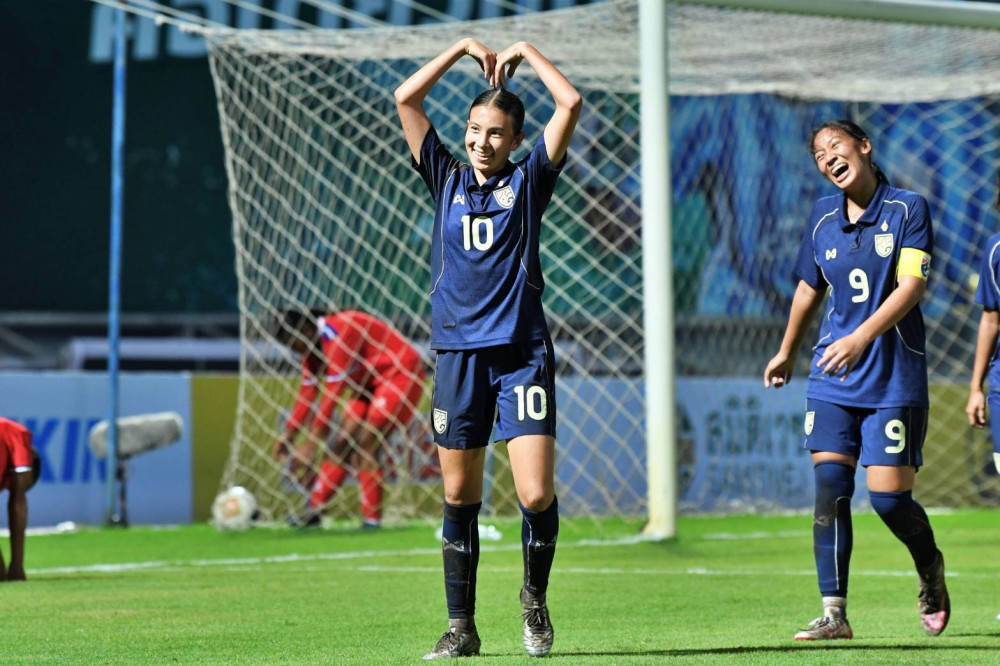 ทดเจ็บ จากลูกเตะมุม พัทธมณฑ์ แสงตา โหม่งเข้าไปให้ ทีมชาติไทย U17 นําห่าง เนปาล เป็น 12-0
