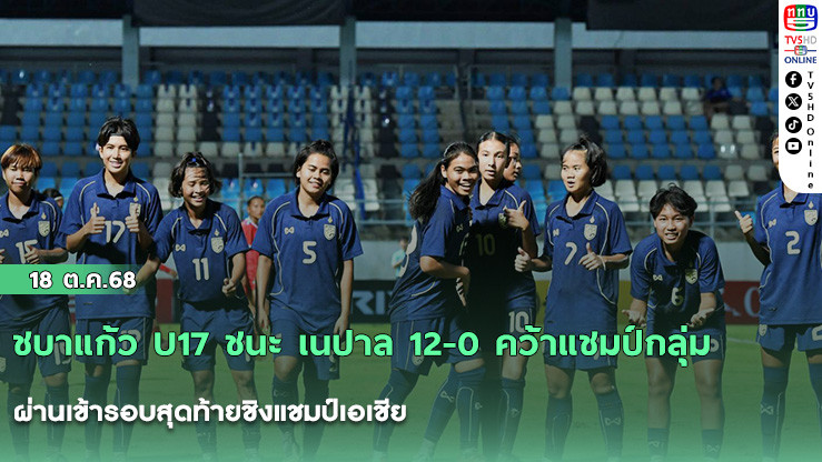 ชบาแก้ว U17 ชนะ เนปาล 12-0 คว้าแชมป์กลุ่มผ่านเข้ารอบสุดท้ายชิงแชมป์เอเชีย