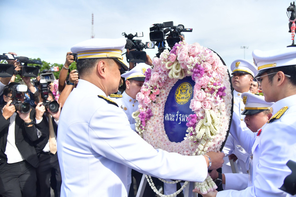 โดยนายกรัฐมนตรีได้วางพวงมาลา ถวายราชสักการะหน้าพระบรมราชานุสาวรีย์ พร้อมนําคณะรัฐมนตรีถวายความเคารพอย่างพร้อมเพรียง ท่ามกลางประชาชน ข้าราชการ และหน่วยงานต่าง ๆ ที่เดินทางมาร่วมพิธีอย่างคับคั่ง