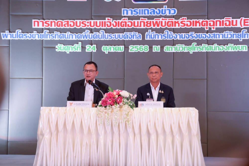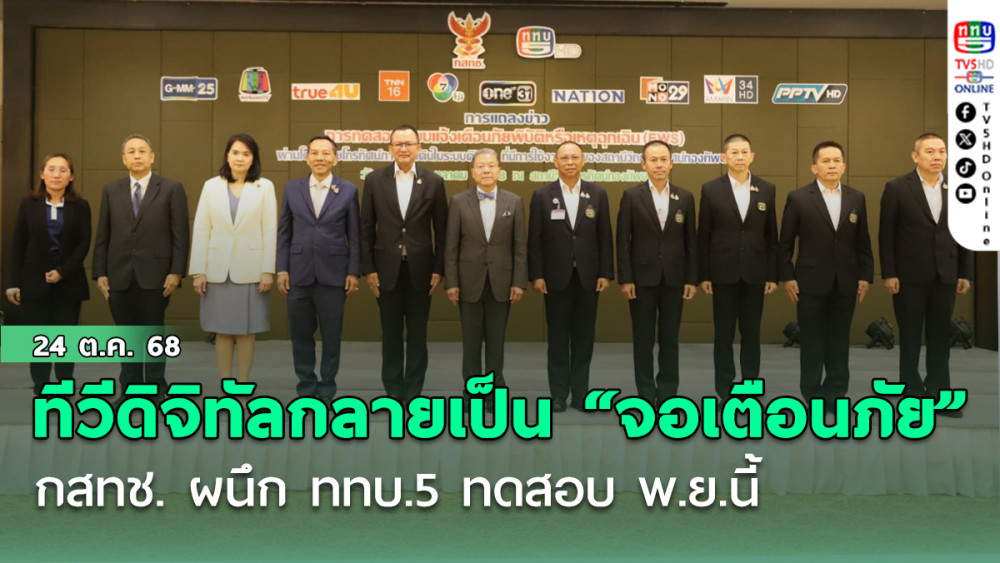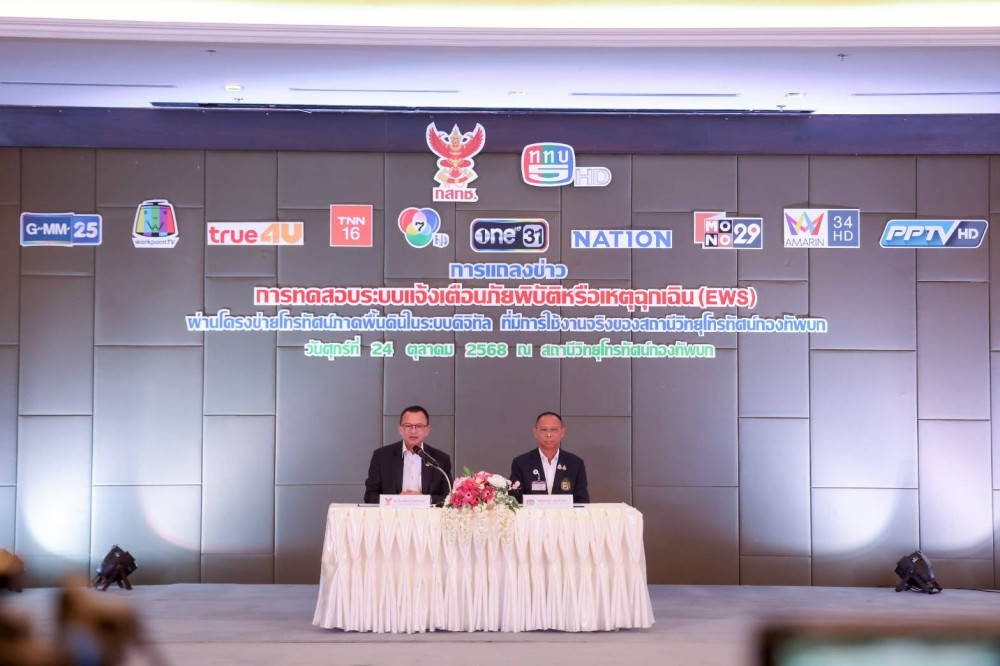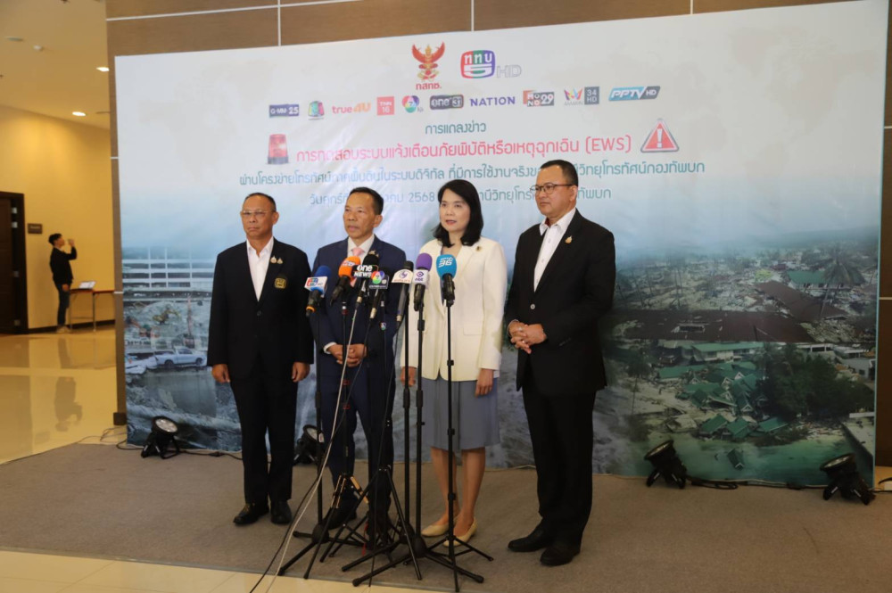 วันที่ 24 ตุลาคม 2568 - สํานักงานคณะกรรมการกิจการกระจายเสียง กิจการโทรทัศน์ และกิจการโทรคมนาคมแห่งชาติ (กสทช.) ร่วมกับสถานีวิทยุโทรทัศน์กองทัพบก (ททบ.5) เตรียมทดสอบระบบแจ้งเตือนภัยพิบัติหรือเหตุฉุกเฉิน (Emergency Warning System: EWS) ผ่านหน้าจอโทรทัศน์ดิจิทัล 11 ช่อง เป็นครั้งแรกของประเทศไทย โดยมีกําหนดทดสอบในวันที่ 13 พฤศจิกายน 2568 เวลา 00.00–01.00 น. ในพื้นที่จังหวัด พะเยา และ ชุมพร