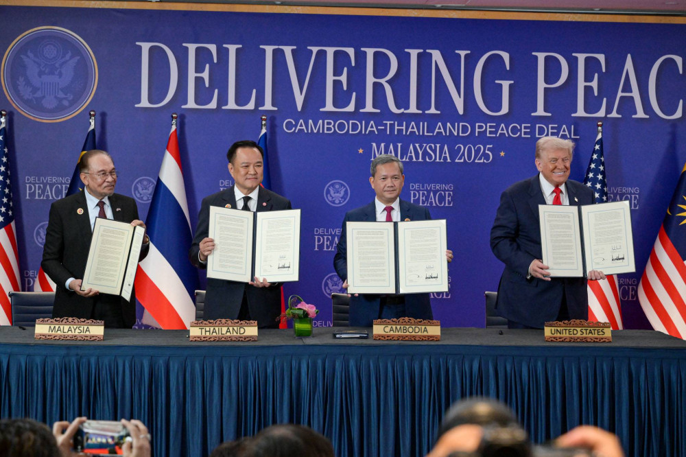 เมื่อถามอีกว่า การลงนามครั้งนี้มั่นใจแค่ไหนว่าจะได้รับการตอบสนองที่ดีจากกัมพูชา นายกฯ กล่าวว่า การลงนามครั้งนี้มีสักขีพยาน มีผู้ประสานงาน และเป็นการลงนามในฐานะที่มีการประชุมสูงสุดของอาเซียน นายอันวาร์ อิบราฮิม นายกฯ มาเลเซีย ในฐานะประธานอาเซียน ก็เป็นส่วนหนึ่งที่ได้ลงลายมือชื่อในฐานะสักขีพยานด้วย เปรียบเสมือนว่าการบรรลุเงื่อนไขในปฏิญญาครั้งนี้ดําเนินการภายใต้การรับรู้รับทราบของประชาคมอาเซียนรวมถึงนายโดนัล ทรัมป์ ประธานาธิบดีสหรัฐอเมริกา ก็ได้รับรู้ข้อตกลงครั้งนี้น่าจะเป็นนิมิตรหมายที่ดี ถ้าเป็นเราก็คงไม่กล้าจะทําอะไรที่นอกเหนือหรือไม่ปฏิบัติตาม