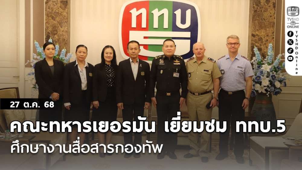 วันที่ 27 ตุลาคม 2568 - สถานีวิทยุโทรทัศน์กองทัพบก ให้การต้อนรับคณะนายทหารจากสหพันธ์สาธารณรัฐเยอรมนี ในโอกาสเดินทางมาศึกษาดูงานด้านการสื่อสารและโทรทัศน์กองทัพ เพื่อแลกเปลี่ยนองค์ความรู้และประสบการณ์ในการพัฒนา “สื่อสาธารณะเพื่อความมั่นคง” ระหว่างกองทัพของทั้งสองประเทศ
