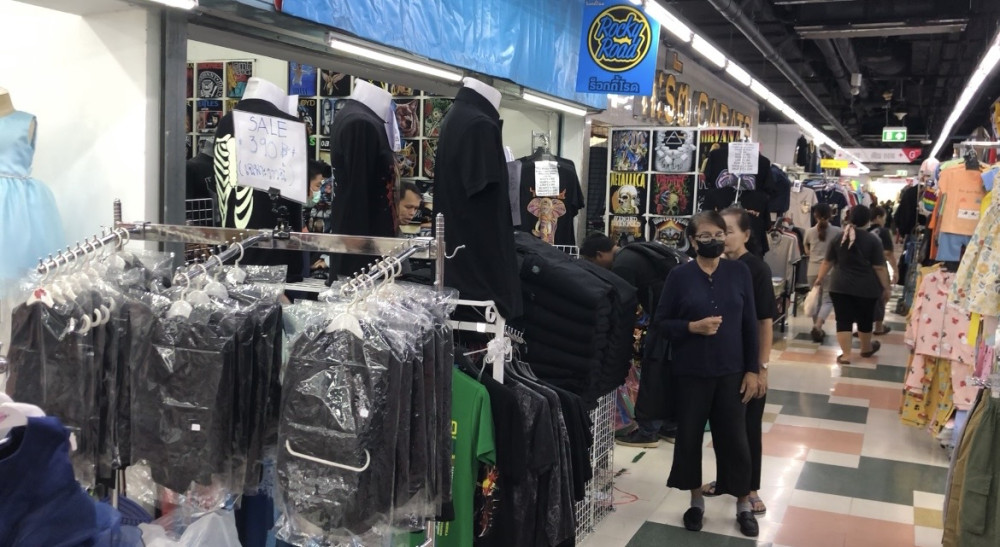 ทั้งพ่อค้าแม่ค้าที่เดินทางมาเลือกซื้อเสื้อผ้าสีดําไปขายต่อ และประชาชนทั่วไปที่มาหาซื้อไว้สวมใส่เพื่อร่วมแสดงความอาลัยแด่ สมเด็จพระนางเจ้าสิริกิติ์ พระบรมราชินีนาถ พระบรมราชชนนีพันปีหลวง โดยสินค้าที่นํามาวางจําหน่ายมีให้เลือกหลากหลาย ทั้งเสื้อยืดคอกลม เสื้อโปโล เสื้อเชิ้ตแขนสั้น รวมถึงเสื้อยืดสกรีนข้อความแสดงความอาลัย และผ้านุ่งสีดํา ซึ่งได้รับความสนใจอย่างมาก โดยเฉพาะ เสื้อโปโลสีดํา ที่ขายดีเป็นพิเศษ