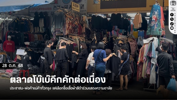 ตลาดโบ๊เบ๊คึกคักต่อเนื่อง ประชาชน–พ่อค้าแม่ค้าทั่วกรุง แห่เลือกซื้อเสื้อผ้าสีดําร่วมแสดงความอาลัย สมเด็จพระนางเจ้าสิริกิติ์ พระบรมราชินีนาถ พระบรมราชชนนีพันปีหลวง