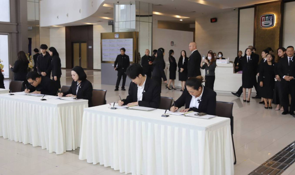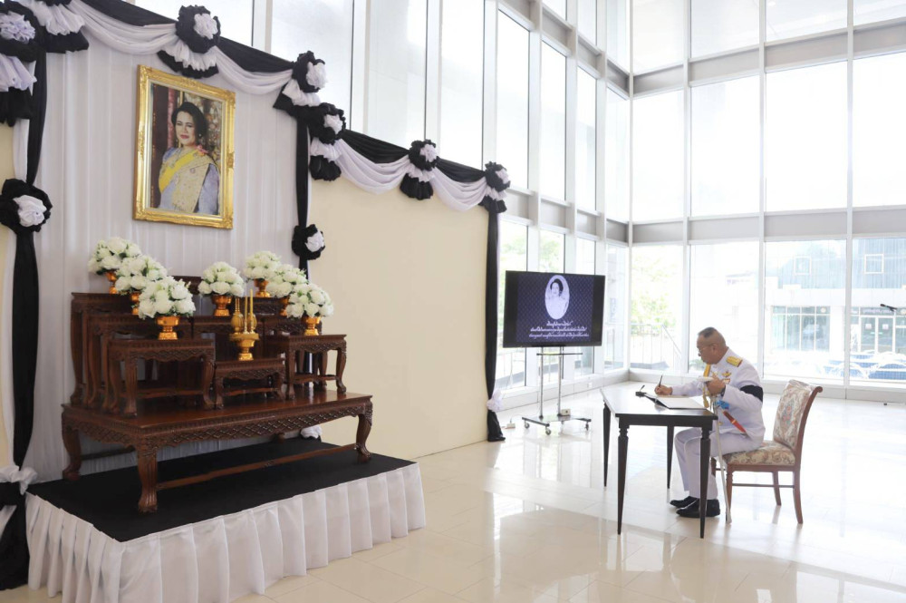จากนั้น กรรมการผู้อํานวยการใหญ่ ททบ. ได้นําคณะผู้บริหารและเจ้าหน้าที่ ยืนสงบนิ่งถวายความอาลัยเป็นเวลา 93 วินาที เพื่อรําลึกถึงพระมหากรุณาธิคุณ ก่อนร่วมลงนามถวายความอาลัยเบื้องหน้าพระบรมฉายาลักษณ์สมเด็จพระพันปีหลวง ด้วยความอาลัยอย่างสุดซึ้งและน้อมส่งเสด็จสู่สวรรคาลัย