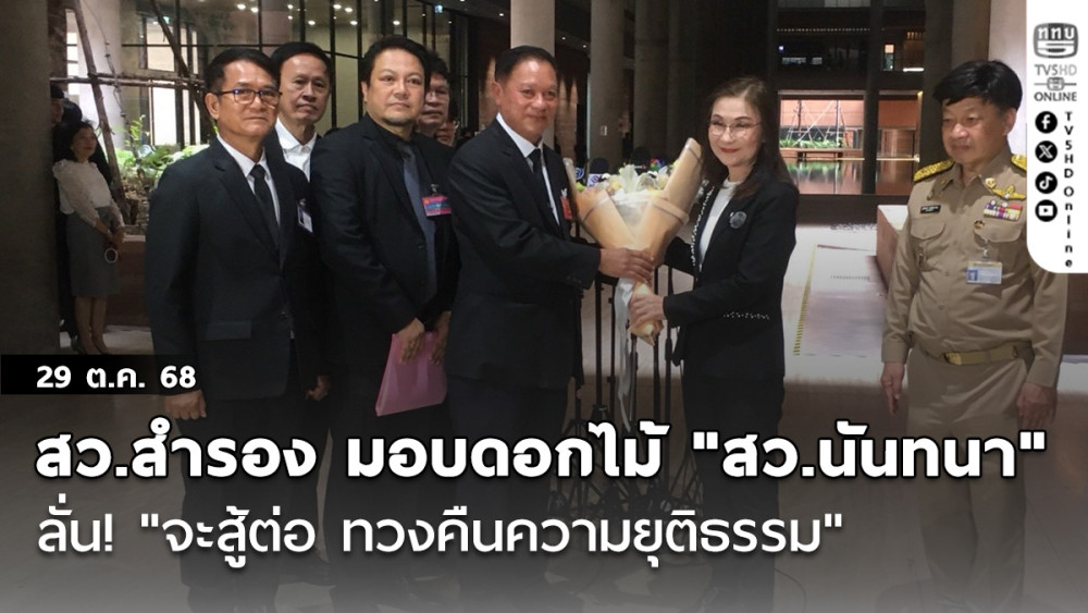 พล.ต.ท.คํารบ ปัญญาแก้ว ตัวแทน สว.สํารอง พร้อมคณะ ได้เดินทางมายังอาคารรัฐสภา เพื่อมอบช่อดอกไม้เป็นกําลังใจให้แก่ น.ส.นันทนา นันทวโรภาส สมาชิกวุฒิสภา หลังจากที่ประชุมวุฒิสภาได้มีมติเห็นว่า น.ส.นันทนา มีพฤติกรรมฝ่าฝืนหรือไม่ปฏิบัติตามมาตรฐานทางจริยธรรม ด้วยข้อหาดูหมิ่น สว. ที่มีอาชีพขายหมู