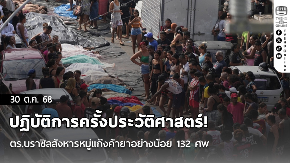 30 ตุลาคม 2568 ยอดผู้เสียชีวิตจากปฏิบัติการของตํารวจกวาดล้างแก๊งอาชญากรรมและยาเสพติดในย่านสลัมของนครริโอเดจาเนโร ประเทศบราซิลเมื่อวันอังคาร (28 ต.ค.) พุ่งเป็น 132 ราย