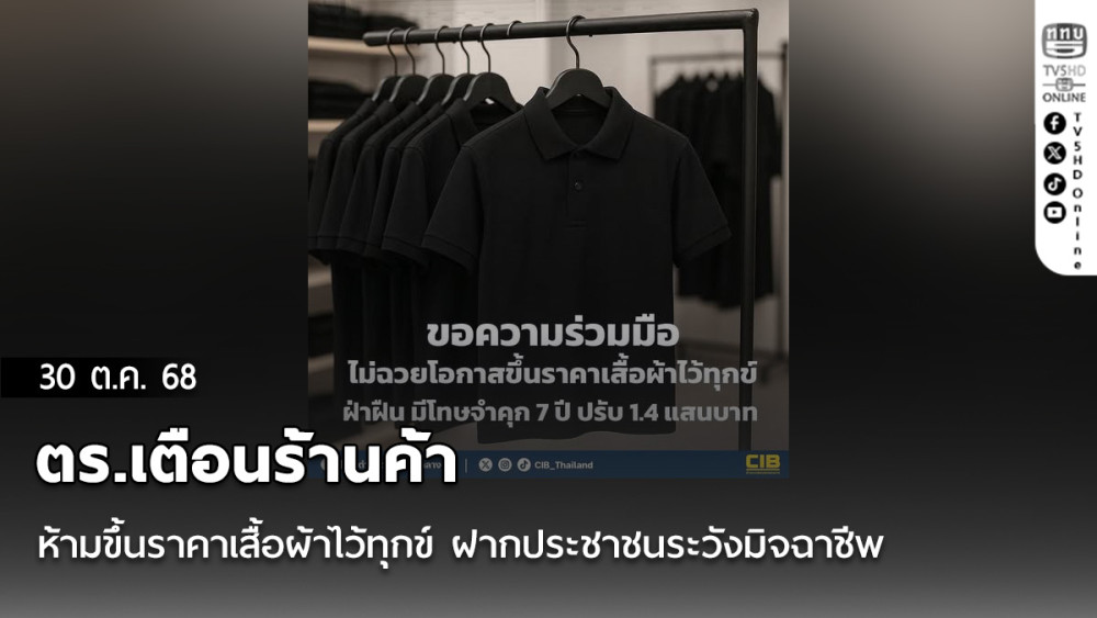 ตํารวจสอบสวนกลาง เตือน พ่อค้าแม่ค้าไม่ปรับราคาเสื้อผ้าสีดําช่วงประชาชนถวายอาลัย ฝ่าฝืนมีโทษตามกฎหมาย พร้อมเตือนภัยมิจฉาชีพทางออนไลน์