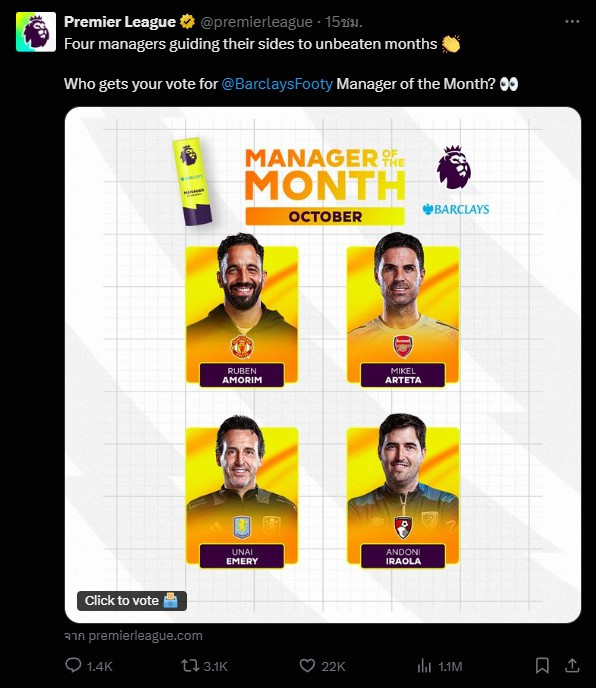 บรรดาแฟนปีศาจแดงคงได้ลุ้นสองรางวัลใหญ่ทั้งกุนซือและนักเตะ หากฟอร์มแรงแบบนี้ยังคงต่อเนื่อง อโมริมอาจเป็นชื่อใหม่ที่เขียนตํานานบทต่อไปให้กับถิ่นโอลด์ แทรฟฟอร์ด