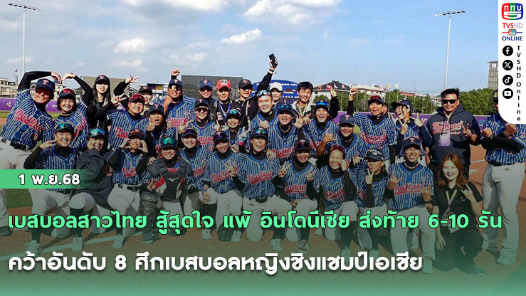 การแข่งขันเบสบอลหญิงชิงแชมป์เอเชีย 2025 ที่เมืองหางโจว สาธารณรัฐประชาชนจีน เมื่อวันที่ 31 ต.ค.ที่ผ่านมา ทีมเบสบอลหญิงทีมชาติไทย ลงแข่งขันรอบจัดอันดับ 7-8 พบกับ อินโดนีเซีย คู่ปรับในอาเซียน