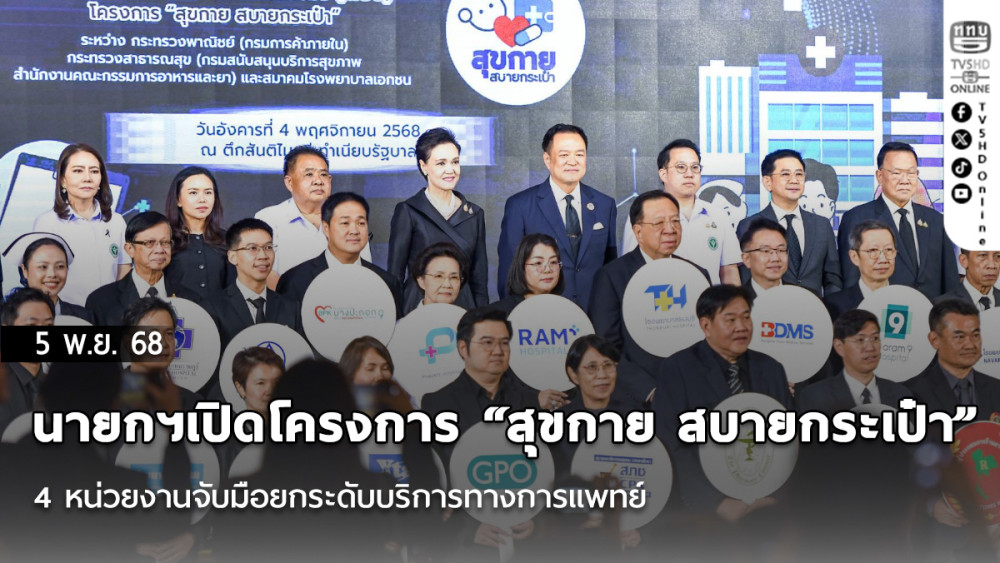 นายกฯ เป็นประธานงาน MOU โครงการ “สุขกาย สบายกระเป๋า” 4 หน่วยงานจับมือยกระดับบริการทางการแพทย์ ลดภาระค่าใช้จ่ายให้ประชาชนเข้าถึงการรักษามากขึ้น เชื่อช่วยลดค่าครองชีพกว่า 30,000 ล้านบาท