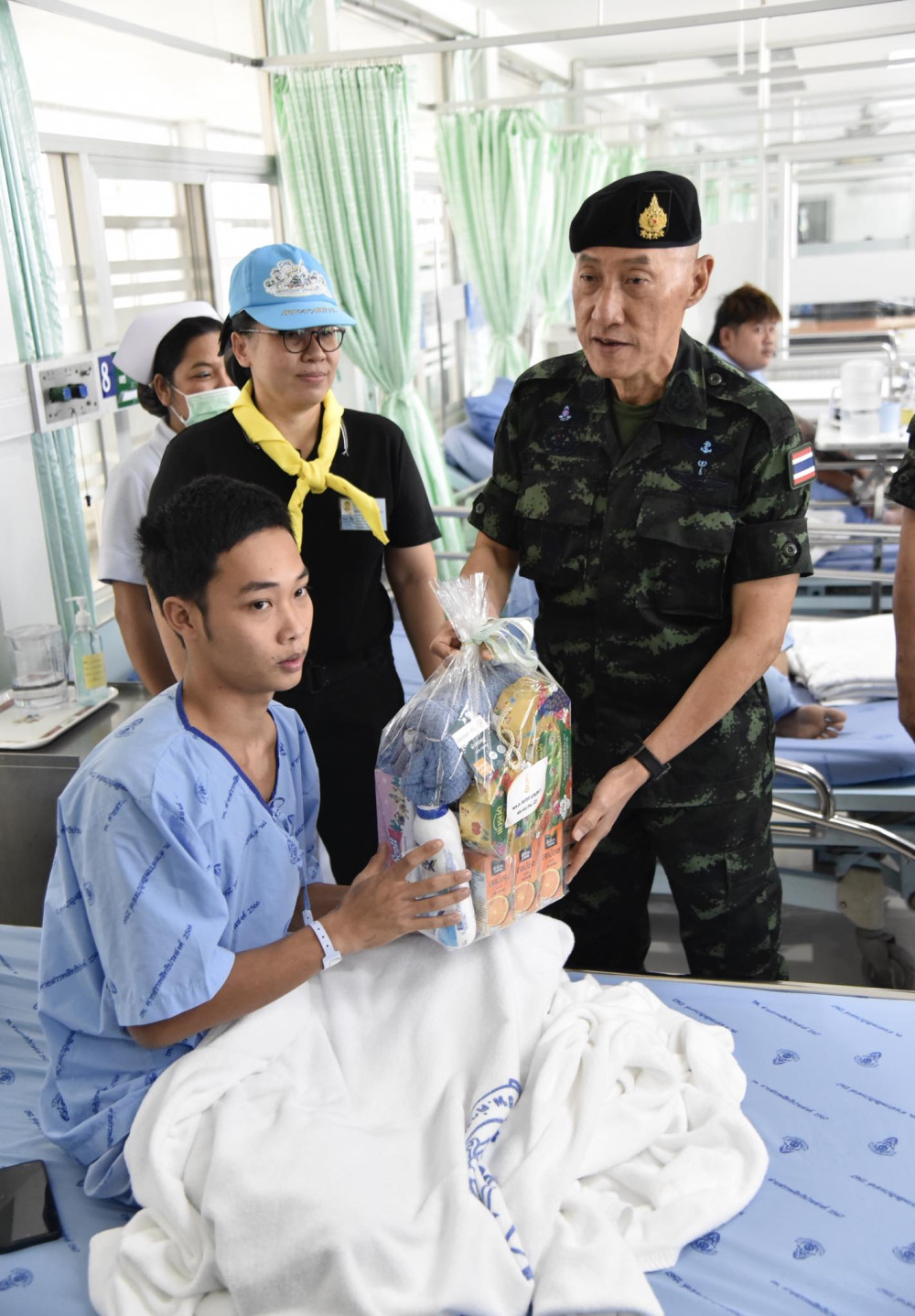 จากนั้น คณะได้เดินทางไป เยี่ยมกําลังพลที่ได้รับบาดเจ็บจากการปฏิบัติหน้าที่ ณ โรงพยาบาลค่ายสรรพสิทธิประสงค์ จังหวัดอุบลราชธานี เพื่อแสดงความห่วงใยและติดตามอาการอย่างใกล้ชิด พร้อมกล่าวชื่นชมในความเสียสละ ความเข้มแข็ง และความมุ่งมั่นของกําลังพลในการปฏิบัติหน้าที่อย่างเต็มกําลังความสามารถ