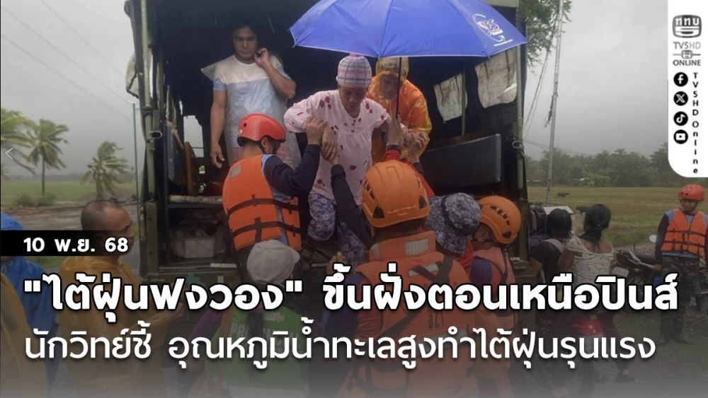 "ไต้ฝุ่นฟงวอง" ขึ้นฝั่งตอนเหนือปินส์ ดับ 2 นักวิทย์ชี้ อุณหภูมิน้ําทะเลสูง ทําไต้ฝุ่นรุนแรงหนัก