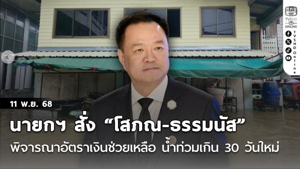 นายกฯ สั่ง “โสภณ-ธรรมนัส” พิจารณาอัตราเงินช่วยเหลือใหม่ สําหรับประชาชนที่บ้านน้ําท่วมเกิน 30 วัน กําชับให้แล้วเสร็จภายใน พ.ย.นี้