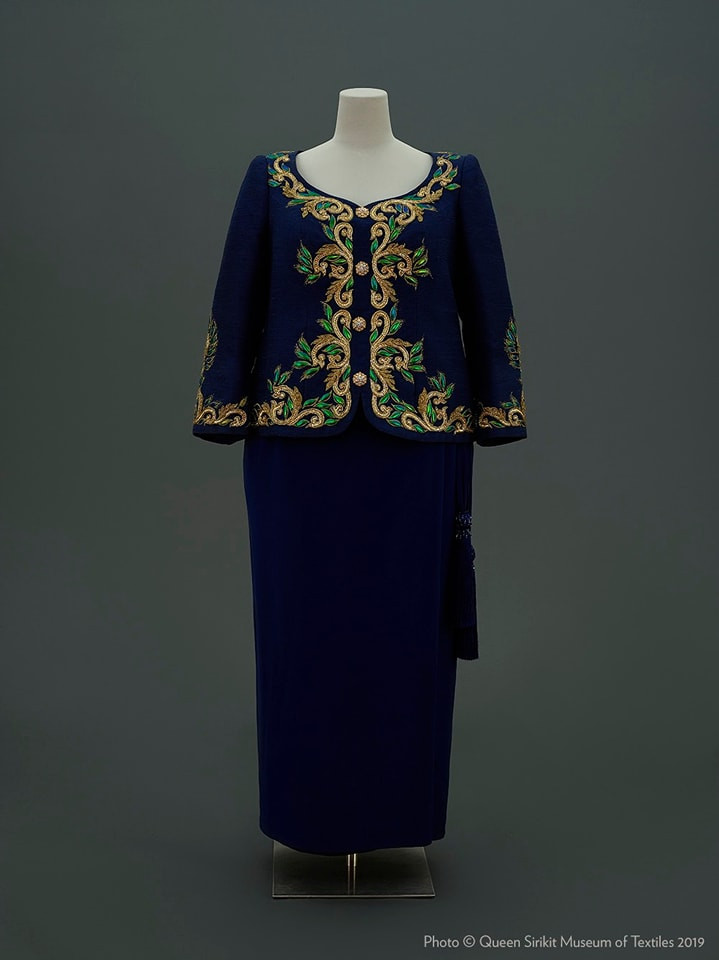 ฉลองพระองค์ที่ทรงเลือก คือชุดที่ตัดเย็บจากผ้าไหม ปักประดับด้วย ปีกแมลงทับ ซึ่งเป็นงานหัตถศิลป์ชั้นสูงของไทย สะท้อนให้เห็นถึงพระราชจริยวัตรที่ทรงส่งเสริมและเผยแพร่มรดกทางวัฒนธรรมของชาติในทุกโอกาสที่เสด็จเยือนต่างประเทศ