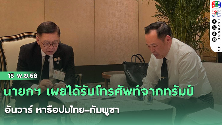วันที่ 15 พ.ย.68 - นายอนุทิน ชาญวีรกูล นายกรัฐมนตรี โพสต์ข้อความผ่านช่องทางโซเชียลมีเดีย ระบุว่าเมื่อคืนวันที่ 14 พ.ย.68 ได้สนทนาทางโทรศัพท์กับนายกรัฐมนตรีอันวาร์ อิบราฮิมของมาเลเซีย และประธานาธิบดีโดนัลด์ ทรัมป์ ของสหรัฐอเมริกา เพื่อหารือถึงสถานการณ์ตึงเครียดระหว่างไทย–กัมพูชา และแลกเปลี่ยนข้อมูลเกี่ยวกับการดําเนินการตามปฏิญญากัวลาลัมเปอร์ที่ทั้งสองประเทศร่วมลงนามเป็นสักขีพยาน นายกรัฐมนตรีระบุในโพสต์ว่า