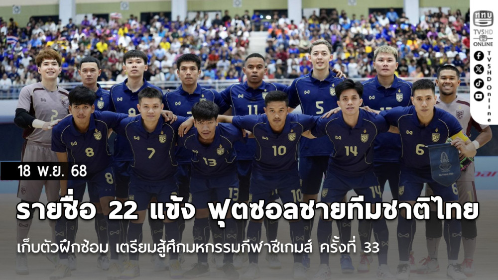 สมาคมกีฬาฟุตบอลแห่งประเทศไทย ในพระบรมราชูปถัมภ์ ประกาศรายชื่อ 22 นักฟุตซอลชายทีมชาติไทย เพื่อเก็บตัวฝึกซ้อม เตรียมความพร้อมก่อนทําการแข่งขันมหกรรมกีฬาซีเกมส์ ครั้งที่ 33 ที่ประเทศไทยเป็นเจ้าภาพ ระหว่างวันที่ 9-20 ธันวาคม 2568 ณ ยิมเนเซี่ยม สนามกีฬากลางจังหวัดนนทบุรี ภายใต้การคุมทัพของ “มิเกล โรดริโก้” หัวหน้าผู้ฝึกสอนชาวสเปน