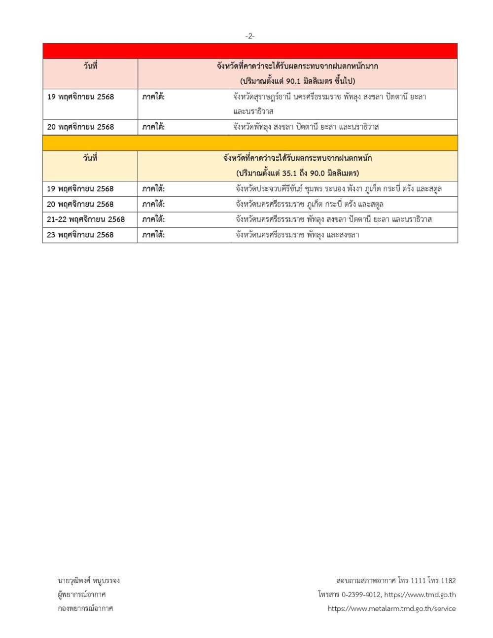 จึงขอให้ประชาชนติดตามประกาศจากกรมอุตุนิยมวิทยา และสามารถติดตามข้อมูลที่เว็บไซต์กรมอุตุนิยมวิทยา http://www.tmd.go.th หรือที่ 0-2399-4012-13 และ 1182 ได้ตลอด 24 ชั่วโมง