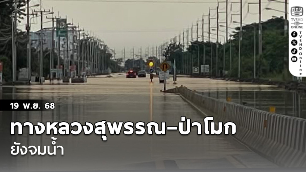 วันที่ 19 พ.ย.68 - ผู้สื่อข่าวลงพื้นที่ตรวจสอบสถานการณ์น้ําท่วมขังบริเวณทางหลวงหมายเลข 33 ช่วงสุพรรณบุรี–ป่าโมก–สายเอเชีย ใกล้แยกหมวดการทางป่าโมก จังหวัดอ่างทอง ซึ่งเป็นหนึ่งในเส้นทางสัญจรหลักของประชาชนในพื้นที่ พบว่าตั้งแต่หน้าปั๊ม ปตท. ไปจนถึงบริเวณหมู่บ้านทํากลอง ระยะทางกว่า 500 เมตร ยังคงมีน้ําท่วมขังสูงเฉลี่ย 20–30 เซนติเมตร ทําให้รถทุกประเภทไม่สามารถผ่านไปมาได้ ส่งผลให้การจราจรต้องปิดการสัญจรเป็นการชั่วคราว