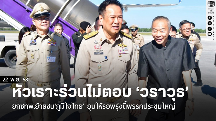 เมื่อเวลา 07.50 น.วันที่ 22 พ.ย. 68 ที่ท่าอากาศยานทหาร 2 กองบิน 6 (บน.6) ดอนเมือง กรุงเทพฯ นายอนุทิน ชาญวีรกูล นายกรัฐมนตรีและรมว.มหาดไทย ให้สัมภาษณ์ถึงกรณีนายอนุชา สะสมทรัพย์ สส.นครปฐม ในฐานะรองหัวหน้าพรรคชาติไทยพัฒนา (ชทพ.) ออกมาระบุว่า พรรคชาติไทยพัฒนา(ชทพ.)จะย้ายไปอยู่กับพรรคภูมิใจไทยทั้งพรรค ว่า ขอให้รอดูวันที่ 23 พ.ย.เนื่องจากวันนั้นมีการประชุมใหญ่ของพรรค