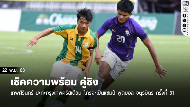 ศึกฟุตบอลจตุรมิตรสามัคคี ครั้งที่ 31 รอบชิงชนะเลิศ เทพศิรินทร์ พบกับ กรุงเทพคริสเตียน ที่สนามศุภชลาศัย ในวันเสาร์ที่ 22 พ.ย. 68 คิกออฟเวลา 15.45 น.