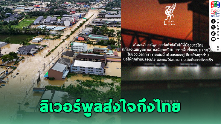 ในขณะที่ประเทศไทย โดยเฉพาะพื้นที่ภาคใต้ กําลังเผชิญกับภัยพิบัติจากอุทกภัยครั้งใหญ่ ส่งผลให้หลายจังหวัดต้องเร่งอพยพประชาชนออกจากพื้นที่เสี่ยง เช่น จังหวัดสงขลา พัทลุง และนราธิวาส ล่าสุด สโมสรฟุตบอลระดับโลก “ลิเวอร์พูล” จากพรีเมียร์ลีก อังกฤษ ได้แสดงความห่วงใยและส่งกําลังใจมายังพี่น้องชาวไทยที่กําลังเผชิญภัยธรรมชาตินี้