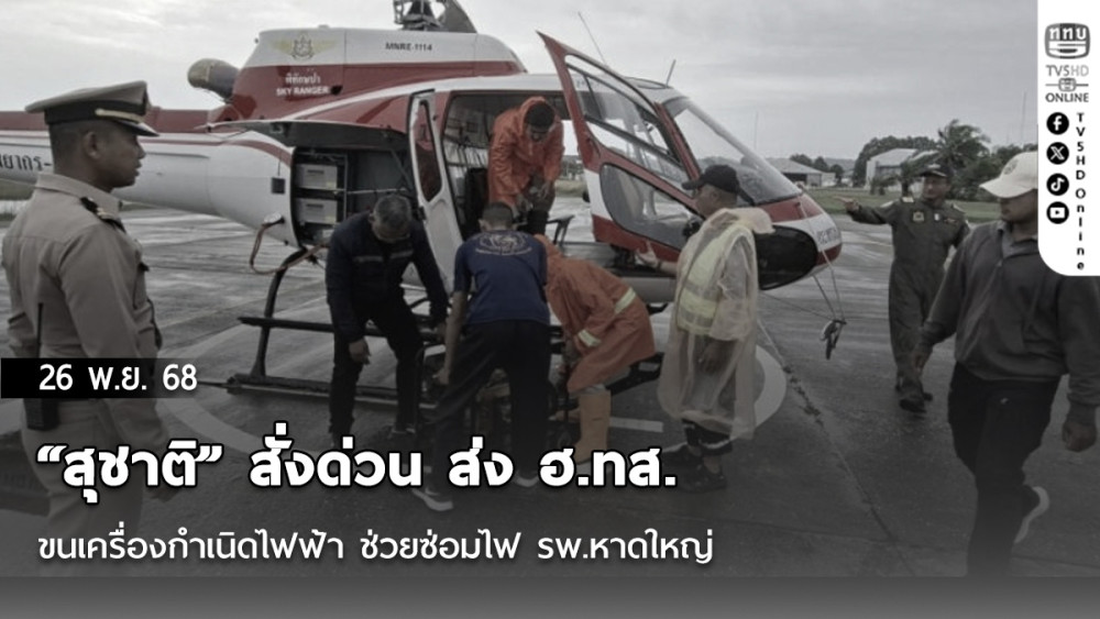 “สุชาติ” สั่งด่วน ส่ง ฮ.ทส. ขนเครื่องกําเนิดไฟฟ้า ช่วยซ่อมไฟ รพ.หาดใหญ่