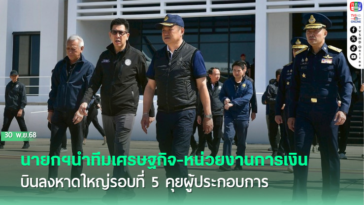 30 พ.ย. 2568 – นายอนุทิน ชาญวีรกูล นายกรัฐมนตรีและรมว.มหาดไทย พร้อมด้วยนายพิพัฒน์ รัชกิจประการ รองนายกฯและรมว.คมนาคม นายเอกนิติ นิติทัณฑ์ประภาศ รองนายกรัฐมนตรี และรมว.การคลัง นายภราดร ปริศนานันทกุล รมต. ประจําสํานักนายกฯ นางศุภจี สุธรรมพันธุ์ รมว.พาณิชย์ นายศักดิ์ดา วิเชียรศิลป์ รมช.มหาดไทย อธิบดีกรมธนารักษ์ อธิบดีกรมโยธาธิการและผังเมือง อธิบดีกรมการค้าภายใน เลขาธิการสํานักงานคณะกรรมการกํากับและส่งเสริมการประกอบธุรกิจประกันภัย(คปภ.)ผู้บริหารธนาคารออมสิน ผู้บริหารธนาคารเพื่อการเกษตรและสหกรณ์การเกษตร(ธ.ก.ส.) ผู้บริหารธนาคารกรุงไทย ผู้อํานวยการสํานักงบประมาณ และรักษาการเลขาธิการสํานักงานทรัพยากรน้ําแห่งชาติ (สทนช.) ออกจากท่าอากาศยานทหาร 2 กองบิน 6 (บน.6)ดอนเมือง กรุงเทพฯ ไปยังกองบิน 56 อําเภอคลองหอยโข่ง จังหวัดสงขลา โดยเป็นการเดินทางลงพื้นที่อําเภอหาดใหญ่ จังหวัดสงขลาเป็นครั้งที่ 5
